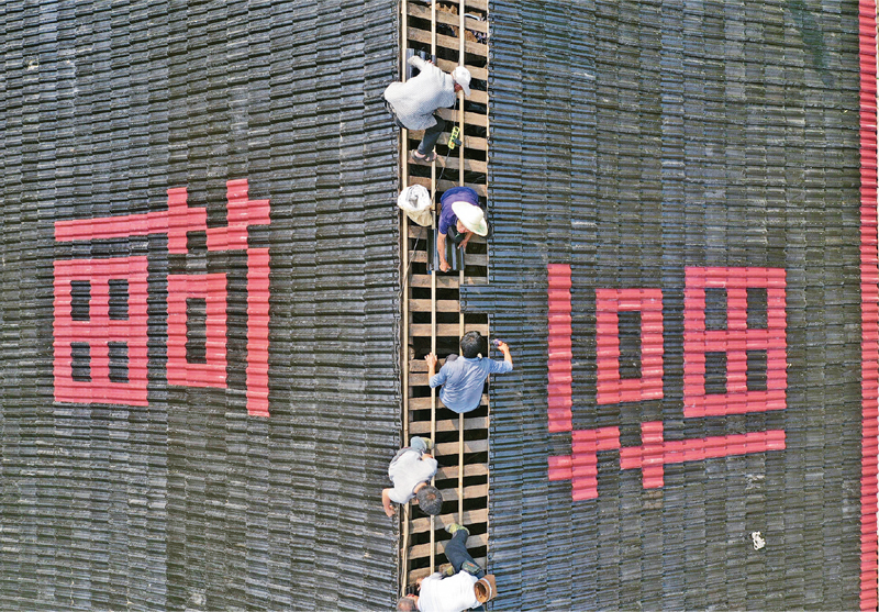 2020年5月12日,广西融水苗族自治县大坪村的村民们在进行危旧房改造。搬进修整一新的房子,村民的获得感、幸福感、安全感切实提升。新华社记者 黄孝邦/摄