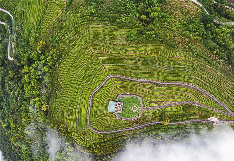墨脱县背崩乡格林村茶园(无人机照片)。新华社记者 姜帆 摄