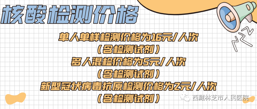 为规范有序地为群众提供核酸检测便民服务,方便“愿检尽检”人群进行核酸检测,林芝市人民医院对核酸检测工作进行了进一步优化调整,现将具体事项公告如下: